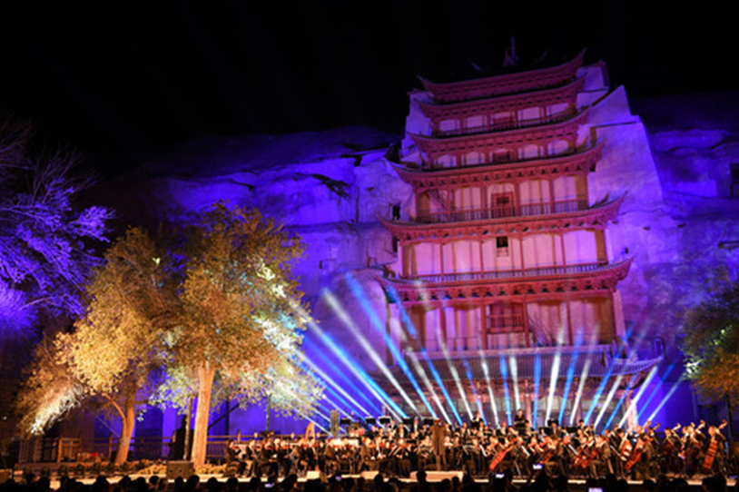 圖為在莫高窟九層樓廣場拍攝的音樂會現(xiàn)場(2016年9月15日攝)。新華社記者范培珅攝