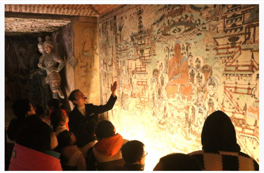 2024年,敦煌市依托當地豐富的人文遺跡和自然景觀,大力發(fā)展文化研學,建成莫高學堂、鳴沙書院等16個研學基地,推出壁畫臨摹、漢簡學堂等獨具敦煌特色的研學產品,讓游客和學生在參觀的同時進一步體驗敦煌文化的魅力。 據了解,敦煌市已推出冬春旅游優(yōu)惠政策,對大中小學生免市屬景區(qū)門票,莫高窟對研學團隊開放洞窟由8個增至13個,并配備資深講解員講解。