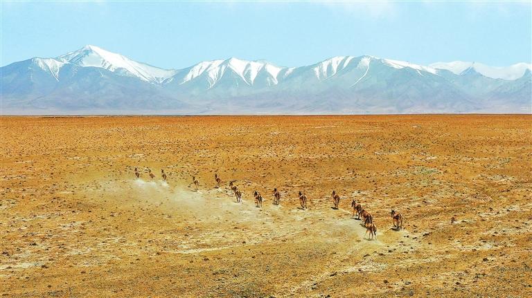 夏日的甘肅鹽池灣國家級自然保護(hù)區(qū)雪山巍峨,景色壯美。一群藏野驢時而追逐奔馳,時而悠閑覓食;大批北歸遷徙的候鳥自由翱翔,盡顯大自然的和諧之美。