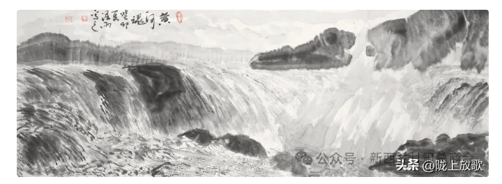 藝無(wú)止境。30多年來(lái),何建祥先生一方面不斷汲取馬西園等老一輩藝術(shù)家豐厚的藝術(shù)養(yǎng)分;一方面道法自然,不斷汲取來(lái)自黃河的天然養(yǎng)分。這使得何建祥先生的畫既有師承:又有突破。他畫黃河,善用景別,善用焦墨,善用散鋒,善用皴擦,把“黃河之水天上來(lái),奔流到海不復(fù)回”的磅氣勢(shì)表現(xiàn)得十分貼切,已然形成了自己的藝術(shù)面貌和個(gè)人風(fēng)格。
