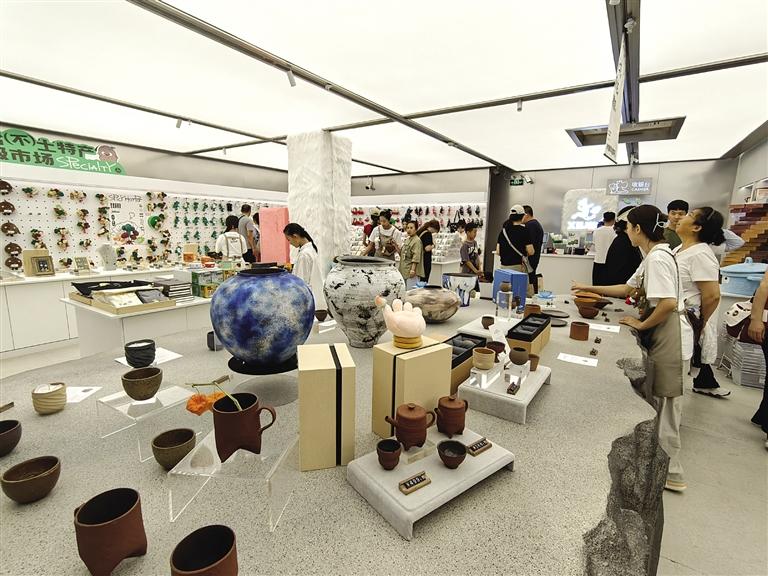 7月17日上午11時(shí),藝術(shù)生活館內(nèi),來自西安的大學(xué)生小朱入手兩個(gè)綠馬、一個(gè)甘肅麻辣燙毛絨玩具、兩盒禮品包裝三炮臺(tái)。“送家人,送同學(xué),都很好。我感覺這兒越逛越好玩,不虛此行。”小朱說。