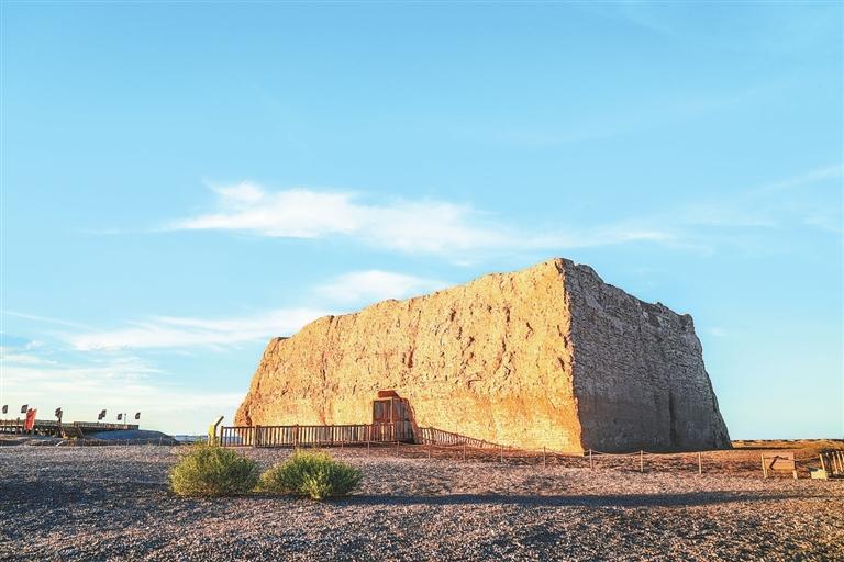 歲月洗禮,如今的陽關(guān)已沒了蹤跡,只剩下一片叫作“古董灘”的洼地,和遠(yuǎn)處的陽關(guān)烽燧。戈壁深處的玉門關(guān),被稱為“小方盤城”,走進(jìn)城中仍能感受到雄關(guān)莊嚴(yán)。往西5公里處,還能見到一段漢長城頑強(qiáng)挺立。