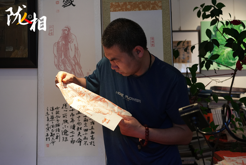 “木刻版畫最困難的步驟,就是能將原圖精準(zhǔn)復(fù)刻,在雕刻過程中,稍有不慎便會(huì)出錯(cuò),需要全神貫注投入其中,才能在刀尖上誕生出精美的藝術(shù)品。”李安樂說,拓印前要進(jìn)行刷色,首先需要制作顏料。他選擇了純色拓印,在朱砂粉中倒入明膠,加入水或酒稀釋,攪拌后顏料就制作完成了。接下來便是開始潤板,再開始刷色,最后將紙張覆蓋在木板上進(jìn)行拓印,在拓印過程中,利用櫚擦或馬蓮進(jìn)行摩擦拓印,等這一系列操作完成后,一幅栩栩如生的木刻版畫就呈現(xiàn)了出來。