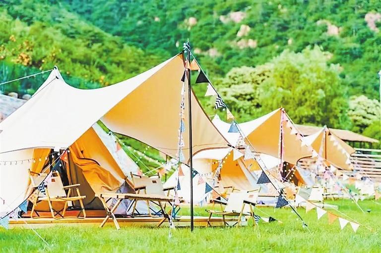 嗅著泥土和綠草的清香,享受久違的愜意。在露營基地來一場豐盛的下午茶,閑聊、玩桌游;當夜幕降臨,來一場煙火味滿滿的草坪燒烤,各種美食鋪在桌上,露營的氛圍感被拉滿。不僅如此,周邊還有太多文旅場景可供選擇,游客可到藥王洞中醫(yī)藥養(yǎng)生堂體驗藥茶、藥膳,在杜梨峁觀景臺祈愿打卡。