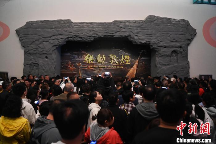 圖為游客觀看大型洞窟式沉浸體驗(yàn)劇《樂(lè)動(dòng)敦煌》。九美旦增 攝