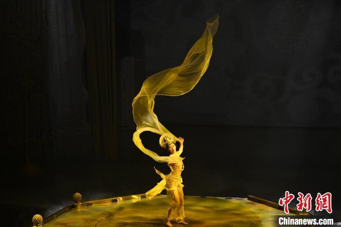 圖為演員在大型洞窟式沉浸體驗(yàn)劇《樂(lè)動(dòng)敦煌》中表演。九美旦增 攝