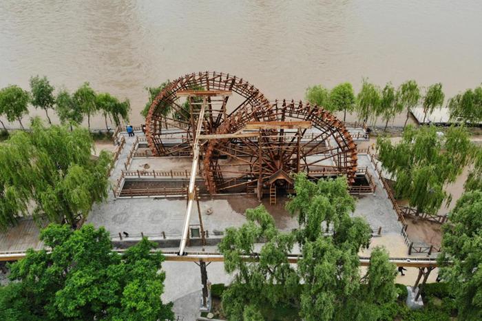 蘭州水車(chē)博覽園內(nèi)的黃河水車(chē)。新華社記者 范培珅 攝