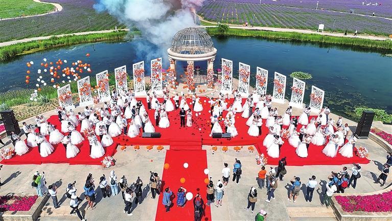 陽光、微風(fēng)、花海……夏季的金昌紫金花海充滿浪漫氣息,溫柔而熱烈。6月29日上午,連續(xù)舉辦七屆的“遇見愛,遇見你”薰衣草集體婚禮如約開場。近年來,一場場薰衣草之約集體婚禮引領(lǐng)金昌婚慶經(jīng)濟(jì)進(jìn)入一個快速發(fā)展階段,集體婚禮也成為金昌旅游對外宣傳推介的一張亮麗名片。