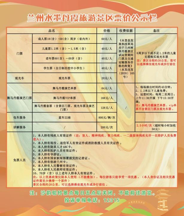 2.售票方式為隨車售票(可單獨(dú)購買專線車車票)或在蘭州水墨丹霞公眾號(hào)購票通道進(jìn)行線上約票。