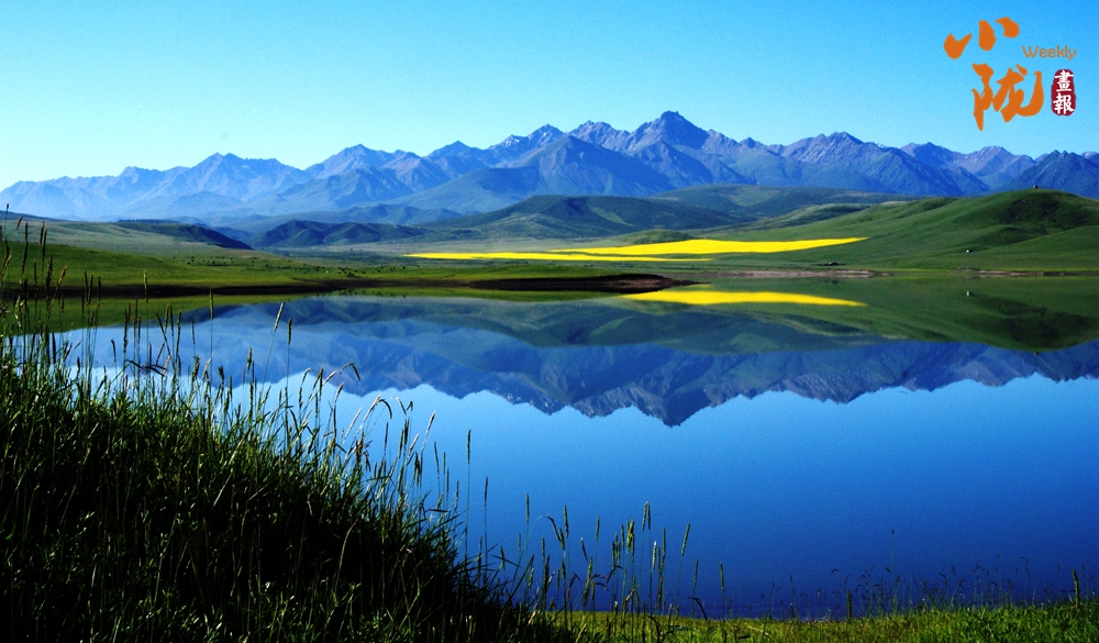 西大河水庫碧亮賜透,宛若草地上鑲嵌的藍(lán)寶石,遠(yuǎn)處的牛羊、油菜花和壯麗的祁連山倒影水中,像一幅水彩畫?!?/p>