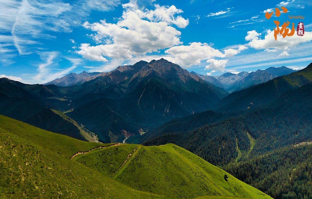 秋日的祁連山肅穆大氣,周圍群峰層巒疊嶂,被此起彼伏的林海包圍,像一道道綠色的波浪。