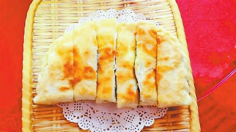 烙饃則是最關(guān)鍵的一環(huán),鍋?zhàn)詈檬瞧降祝筒灰诉^(guò)多,待油溫上升到一定溫度后,再將麻腐饃放入鍋里,等底面烙熟泛黃后,將其翻面,再熱。這個(gè)度的把握也是最考廚藝的,饃要熟卻不能過(guò),皮要黃卻不能焦,待麻腐饃兩面出現(xiàn)微黃色且有脆皮時(shí)即可出鍋。