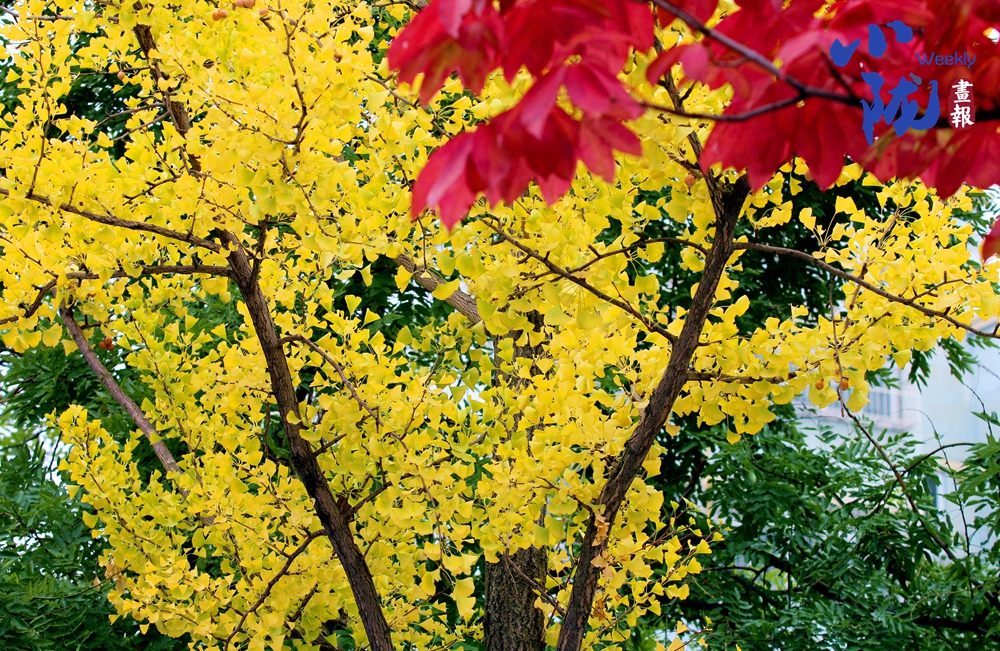 金色、紅色、綠色的秋葉融為一體,繽紛多彩,枝葉隨風擺動,發(fā)出簌簌聲響,令人心曠神怡。