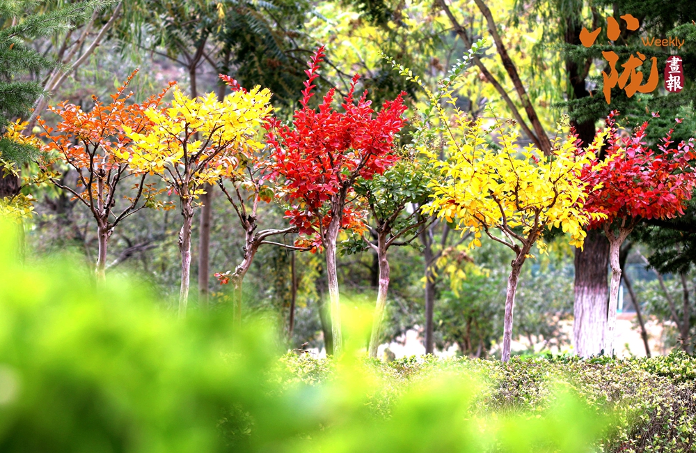 紅、黃、橙的顏色在秋風中靜靜綻放,溫暖而又柔和,形成了一片片絢麗的色塊,把深秋裝扮得斑斕靚麗。