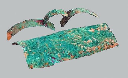 冶金業(yè):辛店文化遺址發(fā)現(xiàn)了一定數(shù)量的早期青銅制品。其中在蓮花臺(tái)遺址瓦渣咀發(fā)現(xiàn)青銅刀2件、錐2件、扣3件。其中一件青銅刀刀身扁薄,凹背弧刃,長(zhǎng)殘4.5厘米、寬1.5厘米;青銅錐錐身挺直,橫剖面呈方形,其中一件殘長(zhǎng)5.2厘米;青銅扣球面或凸面,扣內(nèi)有脊,脊的橫剖面作圓形或方形,直徑一般在1.4厘米—1.6厘米之間。在黑頭咀發(fā)現(xiàn)1件銅刀和1件銅匕,其中銅刀保存完整,刀身向刃部彎曲,刀尖往上翹,柄部有一凸棱,長(zhǎng)15厘米、寬2.7厘米。張家咀遺址發(fā)現(xiàn)1件青銅器殘片,系為銅容器口腹部殘片,侈口,弧壁,口沿厚0.4厘米。青銅矛一件,矛身略呈三角形,前鋒已殘,銎作長(zhǎng)方形,殘長(zhǎng)3厘米、銎長(zhǎng)1.8厘米、寬0.7厘米。發(fā)現(xiàn)銅渣2塊,經(jīng)鑒定確認(rèn)銅渣為冶煉青銅爐內(nèi)壁殘塊,附在冶煉爐內(nèi)的銅渣長(zhǎng)6.5厘米、寬3.5厘米、厚1.1厘米。經(jīng)過(guò)巖相、光譜分析,銅渣是含有銅、錫、鉛的青銅金屬合金,反映出辛店文化不僅存在青銅器,并且已經(jīng)掌握了冶金技術(shù)。