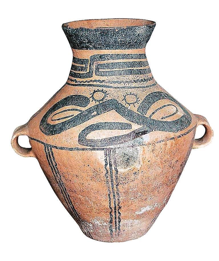 姬家川類型雙勾太陽(yáng)紋彩陶罐