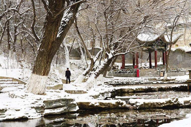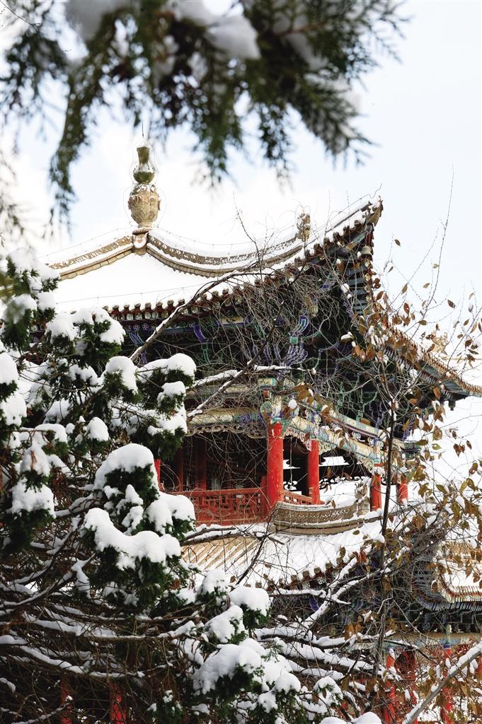 11月25日,雪后的蘭州五泉山公園銀裝素裹,迷人雪景如畫。古老亭臺(tái)樓閣紅墻玉頂、參天古樹玉樹瓊枝,宛如大地書寫的一幅“水墨丹青”,美不勝收,游客紛至沓來(lái),賞雪、拍照,盡情享受清爽的空氣和潔白的美景。 奔流新聞·蘭州晨報(bào)記者 裴強(qiáng) 攝