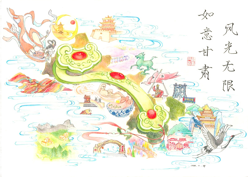 附:《“玉如意”·甘肅印象》彩鉛賀圖及其繪制思路