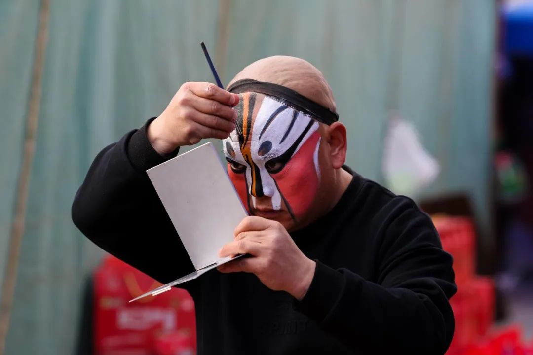 換好戲服,化好戲妝,戴上頭冠,鑼鼓響起,大幕拉開,演員一開口,吼出一嗓高亮秦腔,嘯出黃天厚土的氣魄,臺下響起震雷般的掌聲。一時(shí)間,臺上臺下,你唱我和,慷慨激昂的唱詞從每個(gè)人的胸腔吼出,有熱淚在流,有情緒在涌動(dòng),這是西北人的年,是西北人的歲月狂歡。