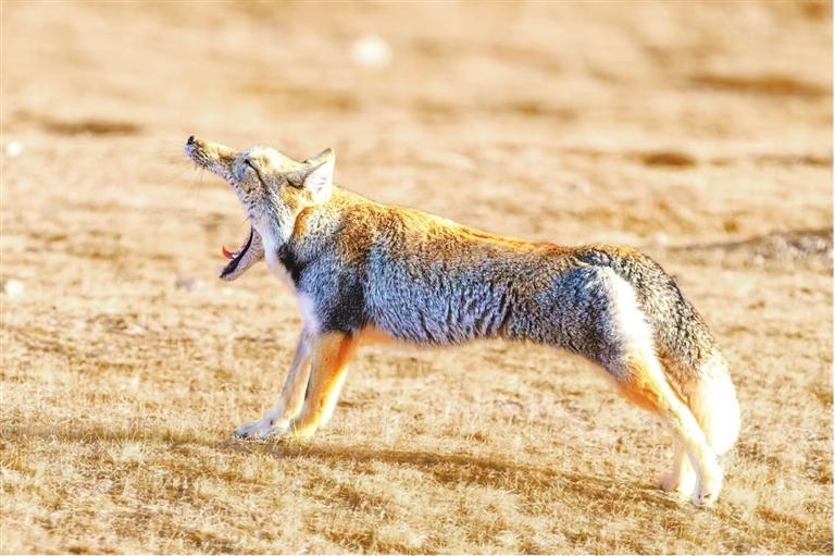 攝影師偶遇一只藏狐,它慵懶地從藏身之處緩緩走出,愜意地沐浴在春日的陽光中。它站立在草地上,伸直前后腿,將整個身體舒展成了一條優(yōu)美的弧線,隨后大大地張開嘴巴,打了一個哈欠,露出那尖銳的牙齒,那模樣既透著幾分呆萌可愛,又帶著些許野性不羈,讓人看了忍俊不禁,為這寧靜的畫面增添了一抹別樣的詼諧與趣味。