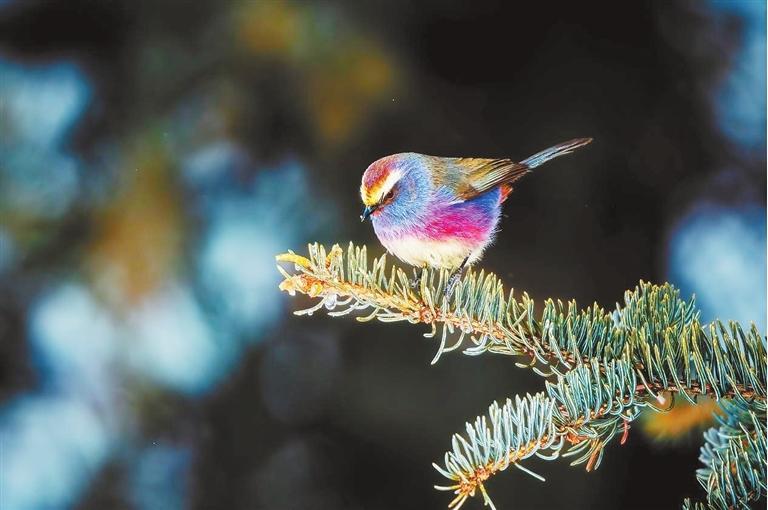 花彩雀鶯是一種毛茸茸偏紫色的雀鶯,它們是祁連山的歌唱家,它們清脆婉轉(zhuǎn)的啼鳴聲,宛如靈動跳躍的音符,打破了山間的寂靜,仿佛在向這世界的每一個角落大聲宣告著:春天來啦!它們在枝頭歡快地跳躍著,靈動的小眼睛不停地打量著周圍發(fā)生的細微變化,宛如一群天真無邪的小精靈,為這山林增添了無盡的靈動與趣味。