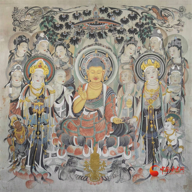 所謂“薄肉雕”就是壁畫(huà)與雕塑結(jié)合,在佛像的裝飾部位和衣衫部位都是壁畫(huà)描繪,在佛像裸露的身體部位則用雕塑來(lái)塑造立體感。