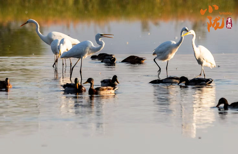 春天,這里萬物復(fù)蘇,蘆葦新綠,候鳥歸來,整個公園充滿生機(jī)。它們依水而居,或在水中游泳和潛水,或在淺水、灘地與岸邊涉行,或在其上空飛行,引得游人們駐足觀看,構(gòu)成一幅人與自然和諧共生的生態(tài)畫卷。