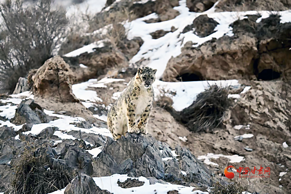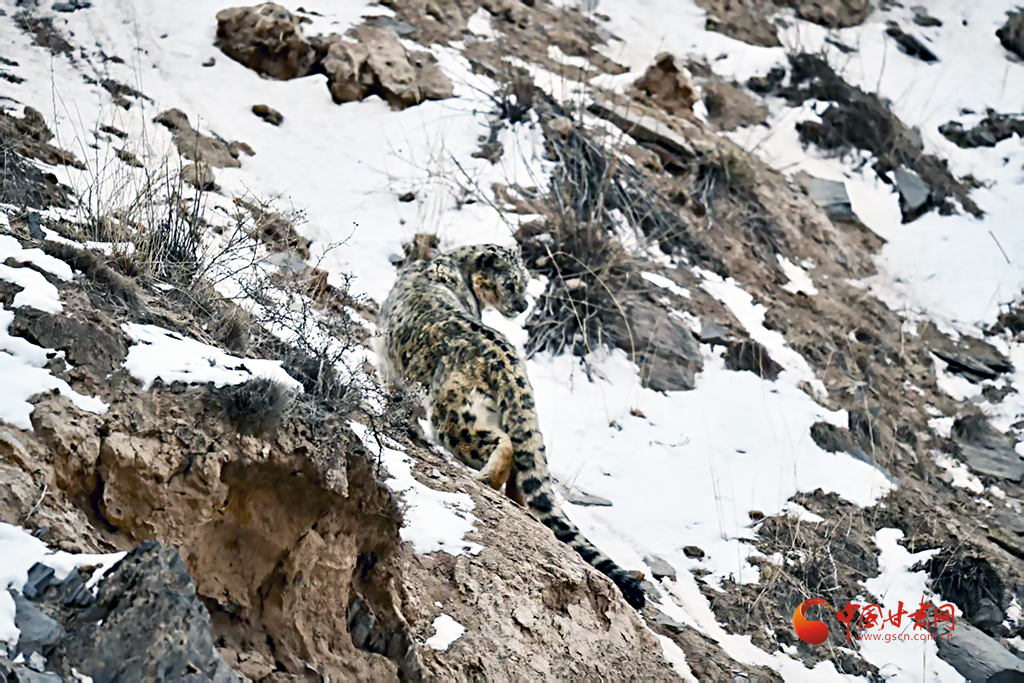 中國甘肅網(wǎng)4月30日訊(西北角·中國甘肅網(wǎng)記者 張慧雅 通訊員 楊寧 阿誠)近日,祁連山管護(hù)中心祁豐自然保護(hù)站工作人員在轄區(qū)開展日常巡護(hù)工作時(shí),在海拔4000米的山坳處,發(fā)現(xiàn)了一只成年雪豹,它灰白皮毛上的黑色環(huán)紋如天然迷彩,琥珀色瞳孔在風(fēng)雪中凝視,蓬松長(zhǎng)尾優(yōu)雅垂落,與身后嶙峋雪巖渾然一體。
