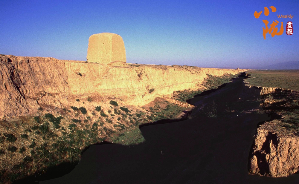 在黛藍(lán)色山脈的映襯下,漢明長(zhǎng)城蜿蜒并行,高于地面的黃色城墻是明長(zhǎng)城,而顏色稍深的壕溝是漢長(zhǎng)城,兩條跨越千載的古長(zhǎng)城最近處不過(guò)十余米,仿佛攜手講述著遠(yuǎn)古的故事……它們也猶如兩位忠誠(chéng)的衛(wèi)士,守護(hù)著這片古老的土地,也見(jiàn)證了絲綢之路的興衰變遷。