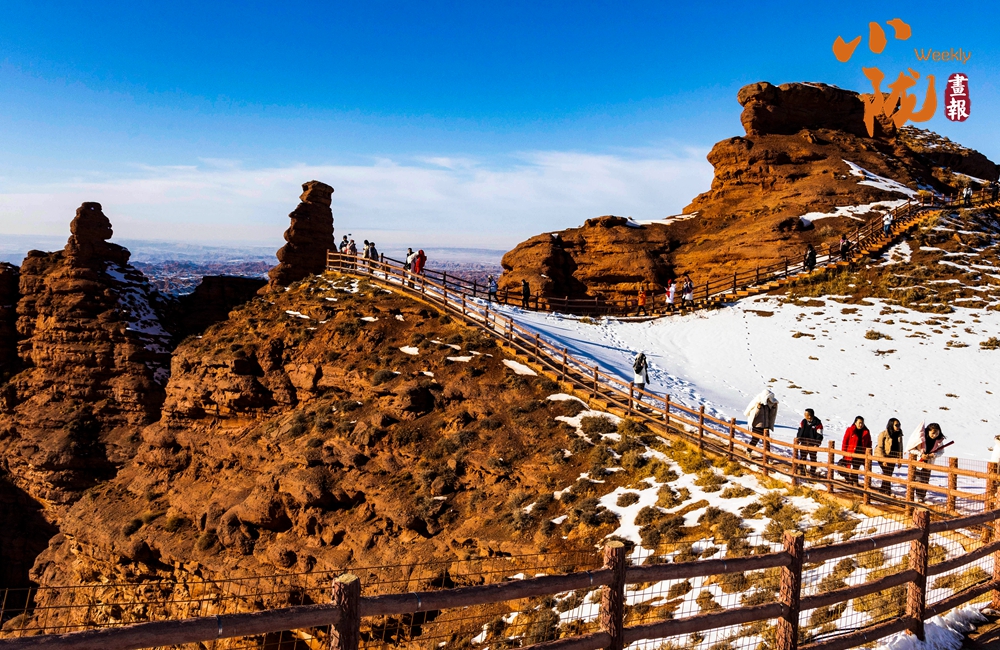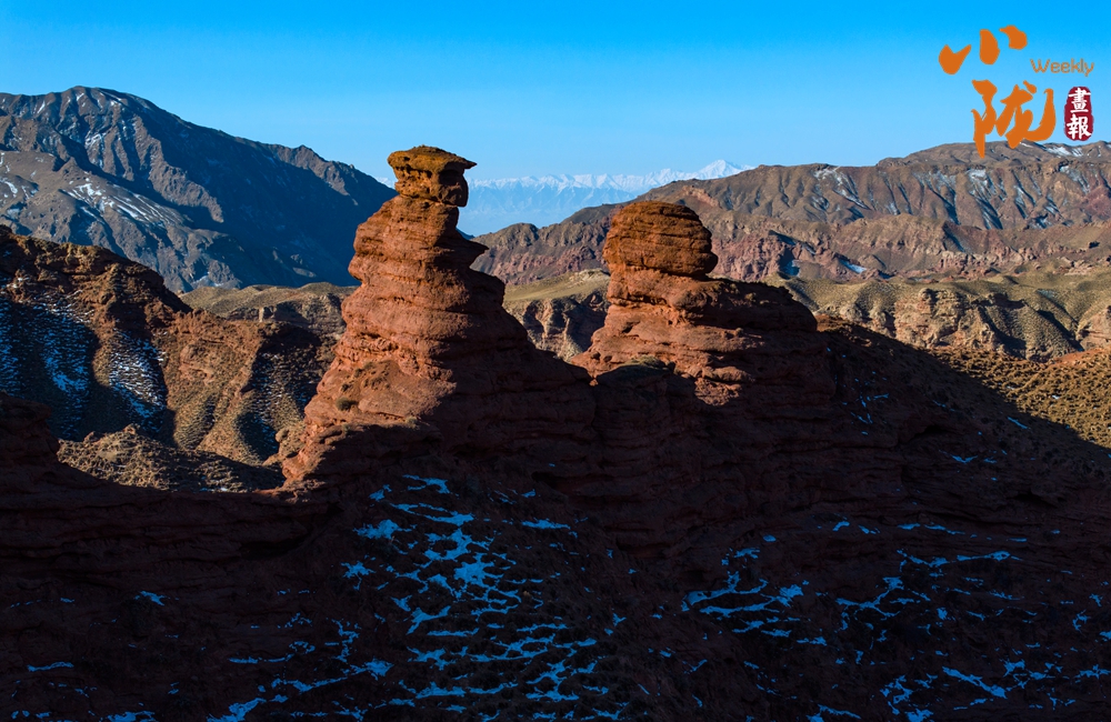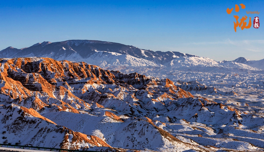 紅色丹霞被春雪覆蓋,在陽(yáng)光的照耀下,紅色山崖層層疊疊、縱橫交錯(cuò),皚皚白雪點(diǎn)綴其中,唯美壯觀。平山湖的山,就在這樣悄無(wú)聲息的雪中,幻化成了氣勢(shì)磅礴的丹霞,綿延千里,浩瀚無(wú)邊。