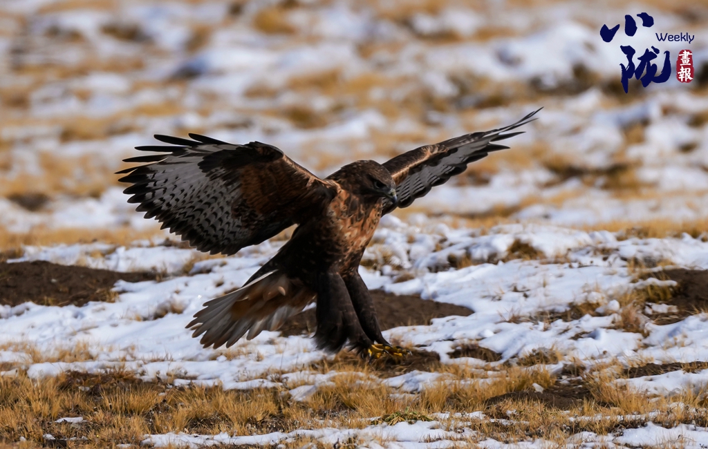 草原雕是國(guó)家一級(jí)重點(diǎn)保護(hù)野生動(dòng)物,別名草原鷹。外貌兇悍、體形碩大的黃棕色雕,不同年齡階段及不同個(gè)體之間體色差異較大。喙灰色,腳黃色。飛行時(shí)兩翼平直,展開長(zhǎng)度可達(dá)200cm,滑翔時(shí)兩翼略彎曲,尾有時(shí)呈形。由于張掖境內(nèi)生態(tài)環(huán)境持續(xù)改善,草原雕已逐漸成為肅南的越冬候鳥,每年11月底到次年4月初,在肅南濕地就能見到它的身影。