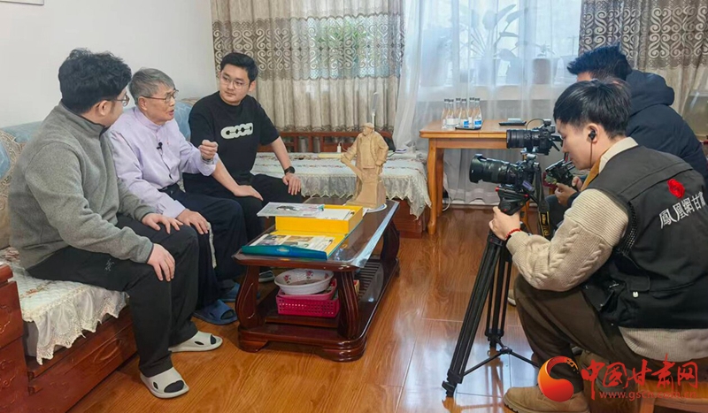 兩度擔(dān)任鐵人秘書的孫寶范(左二)與孫子、外孫接受鳳凰網(wǎng)甘肅頻道采訪。 陳曉斌/攝