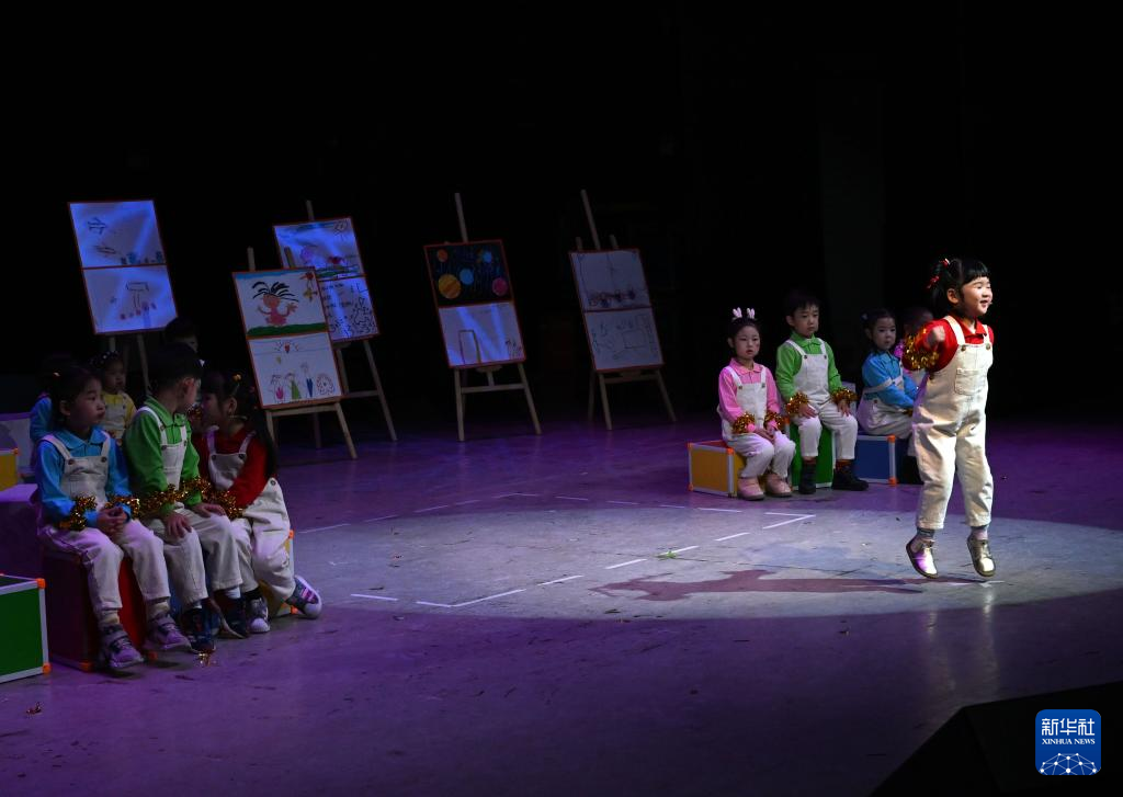 1月16日,小朋友在臺上表演。