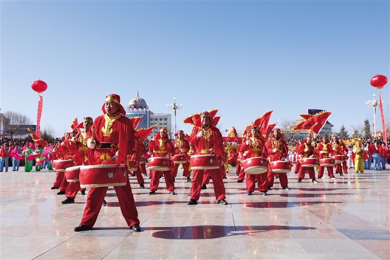 大年初九,平?jīng)鍪嗅轻脊沛?zhèn)耍社火活動為廣大市民和游客獻上一道文化大餐;大年初十,武威市民勤縣鄉(xiāng)村記憶博物館前,紅紅火火的秧歌表演,歌盛世、慶華年,為當?shù)厝罕姞I造了濃濃年味兒;正月十四,臨夏州舉行了“我們的中國夢——文化進萬家”2022年迎新春接社火活動,來自臨夏州內(nèi)四個縣的10支社火表演隊依次登場,現(xiàn)場掌聲雷動,非遺展演添彩“花兒臨夏 在河之州”;蘭州新區(qū)中川小鎮(zhèn)也于正月十四開展了“盛世鼓舞鬧元宵”活動;正月十五元宵節(jié)當天,定西市舉辦以“追趕奮進新定西 非遺社火鬧元宵”為主題的2022年社火展演,酒泉市肅北縣進行了2022年“雪域紫亭·歡度新年”社火展演活動。