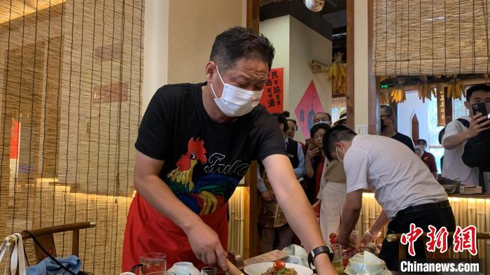 趙亮現(xiàn)場(chǎng)給食客展示如何炒制一鍋美味的柴火雞?!『武?nbsp;攝