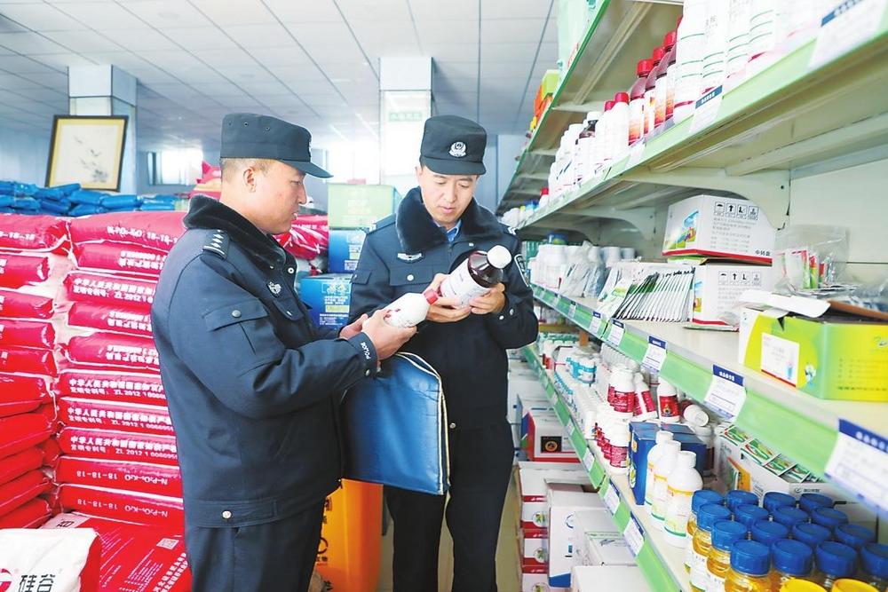 民警在核查農(nóng)藥安全信息。2月28日,定西市公安局安定分局民警開展農(nóng)資市場檢查,從源頭把好農(nóng)資入口關(guān),為春耕生產(chǎn)保駕護(hù)航。新甘肅·甘肅法治報通訊員楊永剛攝