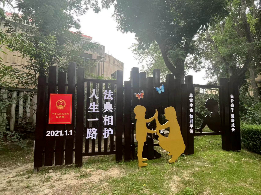 除了線上“第一課”,記者看到,金城公園設(shè)置憲心園、典護(hù)園、網(wǎng)絡(luò)安全主題區(qū)、法治文化廣場四大主題普法區(qū):憲心園設(shè)巨型《憲法》刻書;典護(hù)園設(shè)立了《民法典》宣傳建筑與母子雕塑;網(wǎng)絡(luò)安全主題區(qū)則以圓形建筑為“防護(hù)墻”,聚焦網(wǎng)絡(luò)詐騙、個人信息保護(hù)等,提升網(wǎng)絡(luò)安全意識;法治文化廣場融合明清仿古建筑與現(xiàn)代法律元素,設(shè)置《民法典》生活展牌、網(wǎng)絡(luò)普法園等。