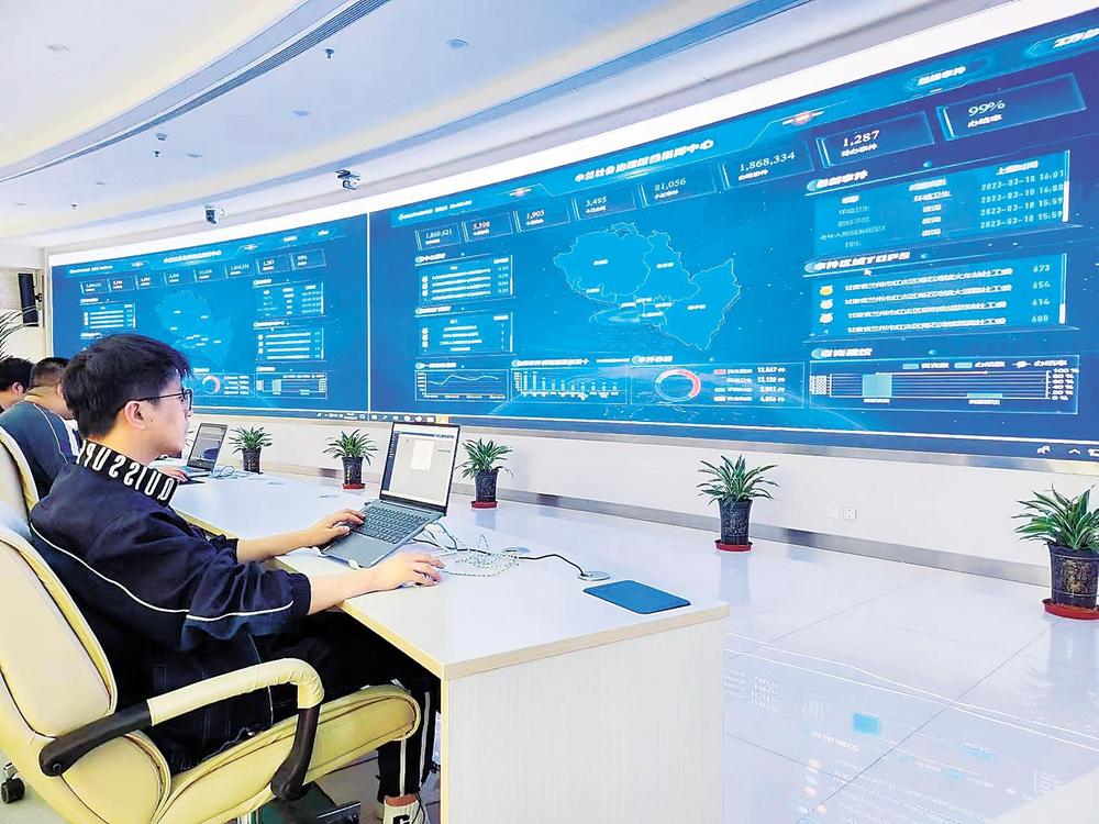 蘭州市社會治安綜合治理中心工作人員實時關(guān)注“民情地圖·小蘭善治”平臺。