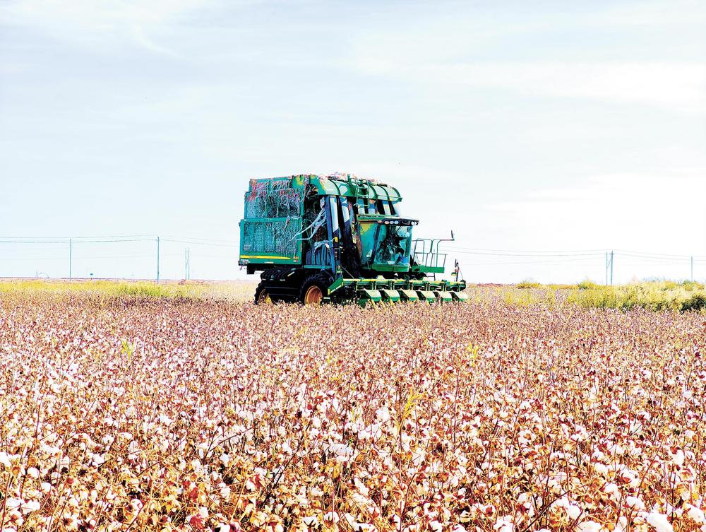 甘肅農(nóng)墾集團(tuán)所屬企業(yè)機(jī)采棉豐收。
