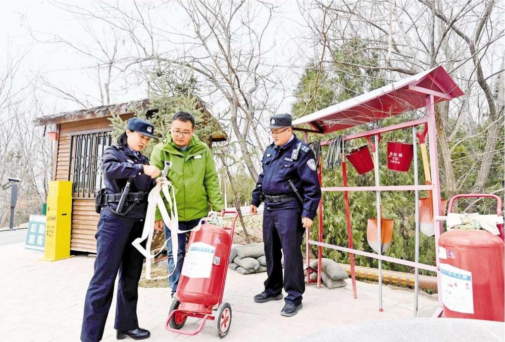 蘭州市公安局森林公安局治安管理大隊民警正在檢查消防設(shè)施。