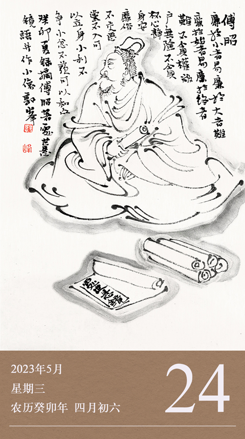 這些我們耳熟能詳?shù)母裱?,出自一本關(guān)于如何為人處世的經(jīng)典書(shū)籍——《處世懸鏡》。此書(shū)分為九卷,分別以一個(gè)字總攬,被人們稱為人生的九字箴言。這九字分別是:識(shí)、行、止、藏、忍、信、曲、厚、舍?!短幨缿溢R》的作者,就是我們今天要介紹的南朝著名清官傅昭。