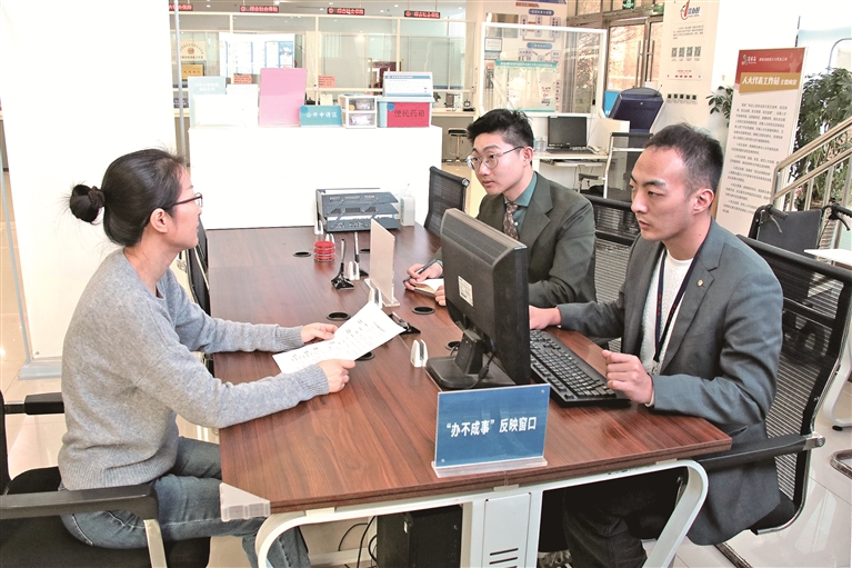 山東省青島市黃島區(qū)紀委監(jiān)委聚焦漠視群眾合理訴求、推諉扯皮“打太極”、不擔當不作為等不正之風,“懲治防”一體發(fā)力,堅決糾治不擔當不作為問題。圖為該區(qū)紀檢監(jiān)察干部在“辦不成事”反映窗口向群眾了解有關情況。杜翔宇 攝