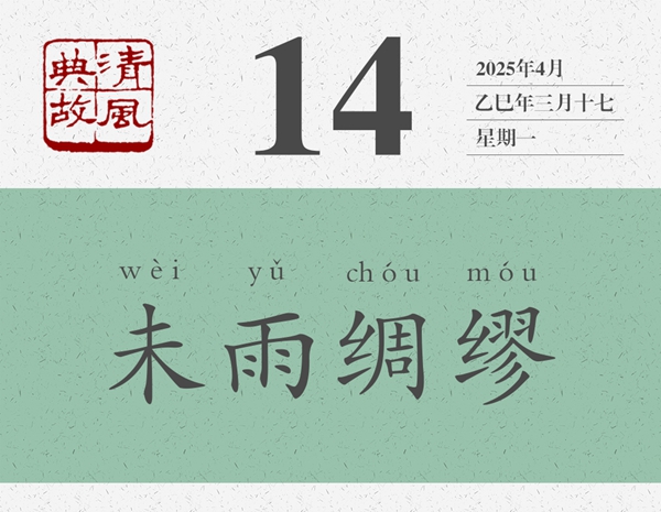 這是一首寓言詩。一般認(rèn)為,是周武王病故后,弟弟周公旦寫給周武王的兒子周成王的誡勉詩。時成王幼弱,周公旦以詩言志,以鳥為喻,表明自己對周成王的一片苦心,以及對國事的一片忠心。“迨天之未陰雨,徹彼桑土,綢繆牖戶”,便形象地表明了自己的一片苦心。后人遂以“未雨綢繆”為典,比喻凡事都應(yīng)提前做好準(zhǔn)備,以防事到臨頭難以應(yīng)對?!吨熳蛹矣?xùn)》:“宜未雨而綢繆,毋臨渴而掘井。”