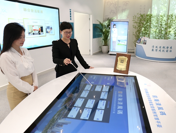 深圳市前海深港現(xiàn)代服務(wù)業(yè)合作區(qū)紀(jì)檢監(jiān)察工委強(qiáng)化大數(shù)據(jù)信息化賦能,搭建監(jiān)督服務(wù)平臺(tái),暢通問題反映渠道。圖為該紀(jì)檢監(jiān)察工委工作人員介紹“前海清風(fēng)碼”使用方法。趙師鈔 攝