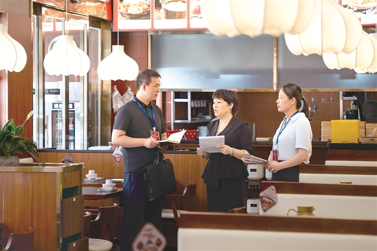 河南省漯河市郾城區(qū)紀委監(jiān)委圍繞公款吃喝、違規(guī)接受管理服務(wù)對象宴請等違反中央八項規(guī)定精神問題開展監(jiān)督檢查,一嚴到底狠剎歪風(fēng)邪氣。圖為近日,該區(qū)紀檢監(jiān)察干部在轄區(qū)某飯店了解相關(guān)情況。王曉 攝