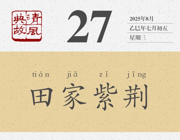 后人即以“田家紫荊”為典,形容兄弟之間同根而生,和睦相處。楊萬里詩《題蕭端虛和樂堂》有這樣的句子:“白頭兄弟不多有,面如橘紅不關(guān)酒。紫荊花開連理枝,孝友未要時人知。”其中“紫荊花開”即化用此典。兄弟同根同源,沒有理由四分五裂,沒有理由互相爭斗。正如曹植《七步詩》所云:“煮豆燃豆萁,豆在釜中泣。本是同根生,相煎何太急?”常言道:“兄弟齊心,其利斷金。”兄弟之間只要心往一處想,勁往一處使,家庭就能欣欣向榮,興旺發(fā)達(dá)。