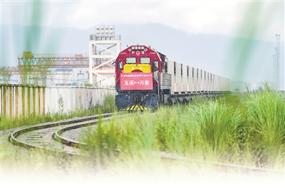8月23日,前往老撾萬象的國際貨物列車駛出中老鐵路中國玉溪研和站。當日,中老鐵路國際貨物列車(玉溪—萬象)實現雙向開行。新華社記者 陳欣波 攝
