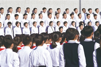 “白山黑水齊出動(dòng),復(fù)興我中華……”殘歷碑廣場(chǎng)上,80名青年學(xué)生鏗鏘有力的朗誦聲,讓《送戰(zhàn)友編歌壯行保國(guó)家》《黑水白山•調(diào)寄滿江紅》《濱江抒懷》三首分別由東北抗聯(lián)英雄楊靖宇、趙尚志、趙一曼當(dāng)年寫下的詩詞響徹在沈陽“九•一八”歷史博物館上空。