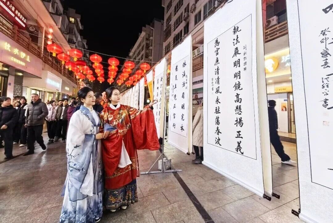 舟曲楹聯(lián)文化是省級非物質(zhì)文化遺產(chǎn),除元宵松棚楹聯(lián)燈會外,在“冬游舟曲•簪花迎春”冬春季文化旅游系列活動中,具有濃厚廉潔元素的楹聯(lián)書法作品亮相“西街七點半•文化大集市”,以墨香傳法韻、以文創(chuàng)載法理、以廉潔沁人心,使紀(jì)法知識和楹聯(lián)文化相互融合、交相輝映,讓廉潔文化“活”起來。