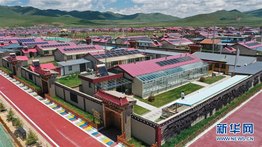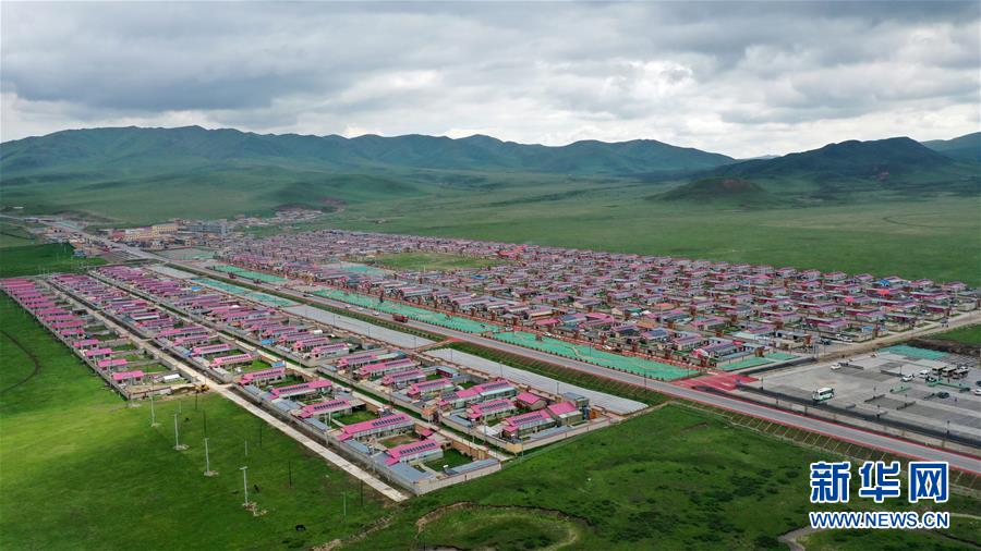 這是6月20日拍攝的甘南藏族自治州碌曲縣尕海鎮(zhèn)尕秀村村貌(無人機(jī)照片)。 新華社記者 陳斌 攝